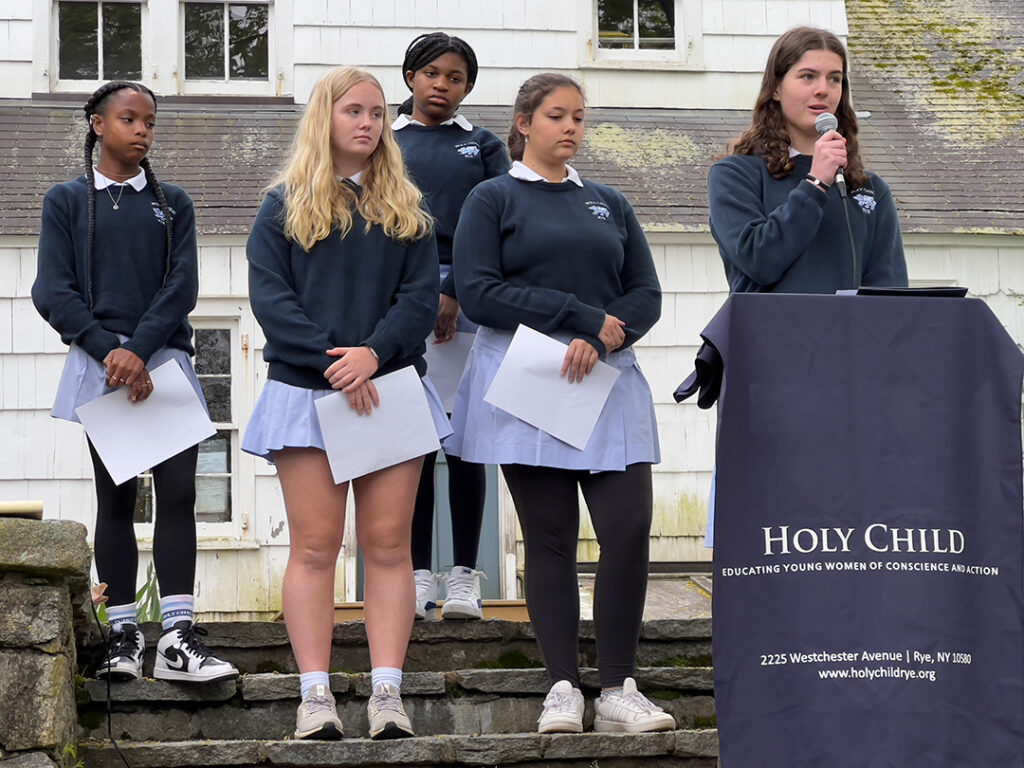 On April 27, 2023, students from the School of the Holy Child and the Rye Historical Society gathered the community to share the stories of Rose and Jack to place Witness Stones in their memory.