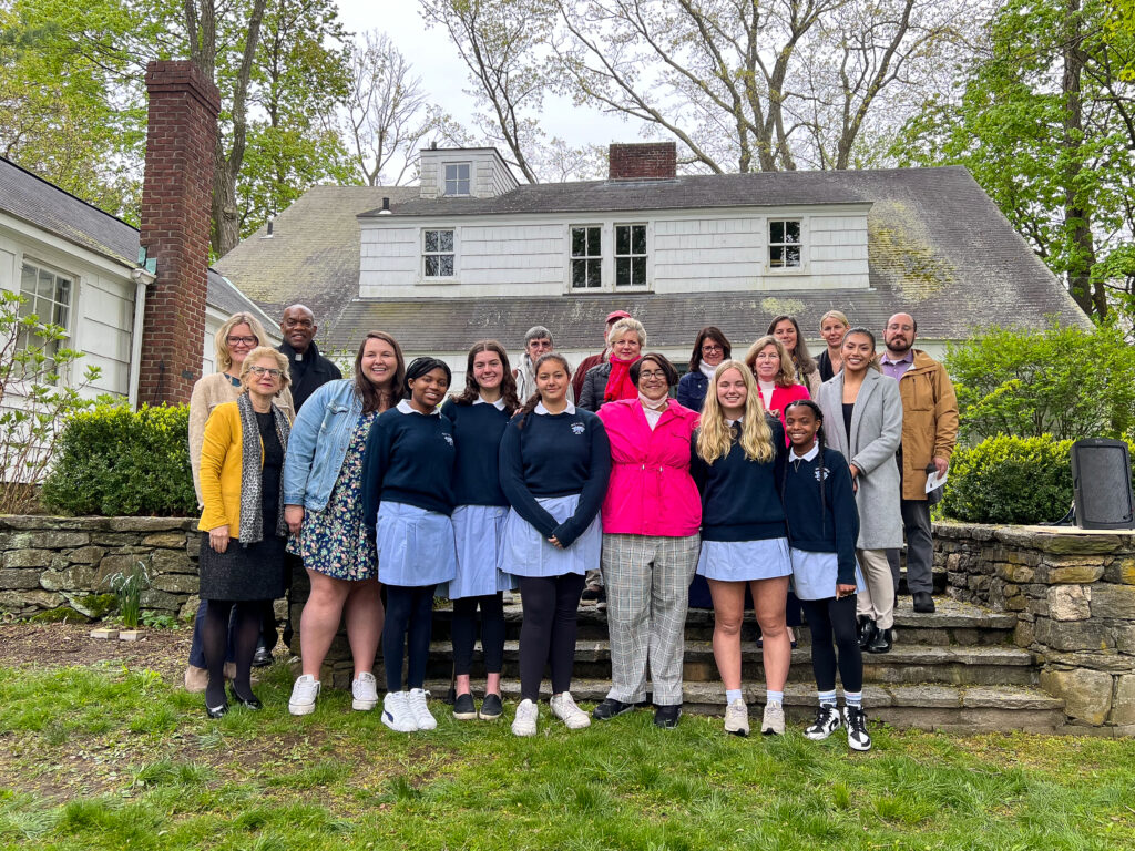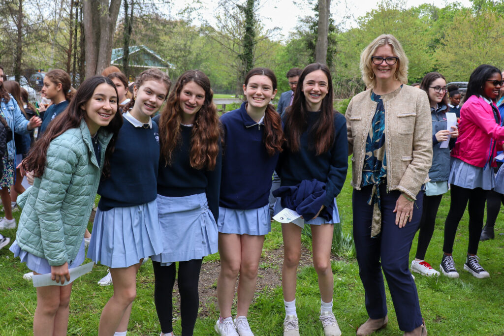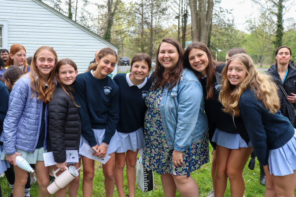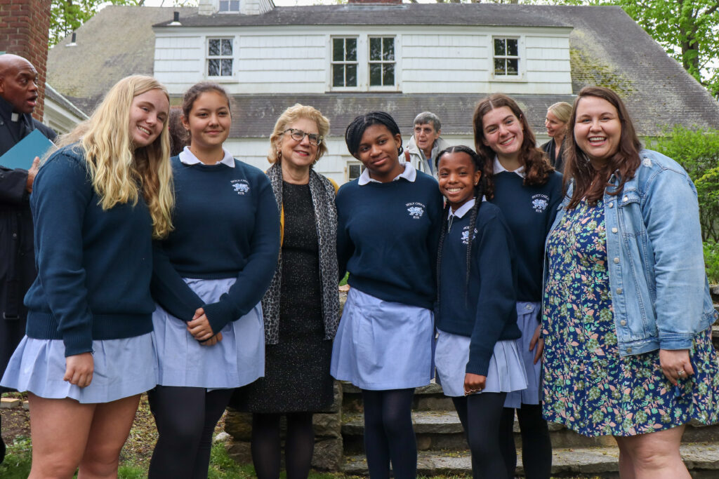 Students from School of the Holy Child with Head of School Colleen Pettus -