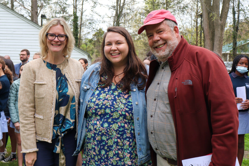 School of the Holy Child Head of School Colleen Pettus, Holy Child History Faculty Member Kathleen Gltthaar Lozano, and Witness Stones Project Executive Director Dennis Culliton -