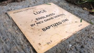Stones honoring the lives of formerly enslaved people now line Lyme Street in Old Lyme. The fourteen plaques are called “witness stones” and are designed to help people learn about and honor the enslaved people who lived in town.