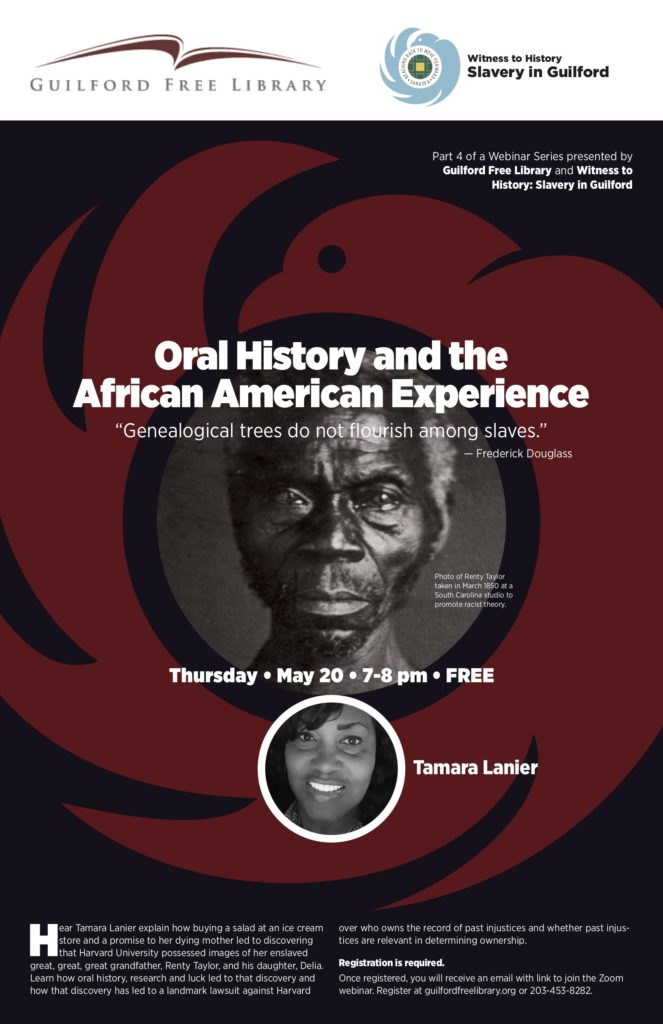 Presented by local Guilford affiliate Witness to History: Slavery in Guilford and the Guilford Free Library. Please click here for more details.