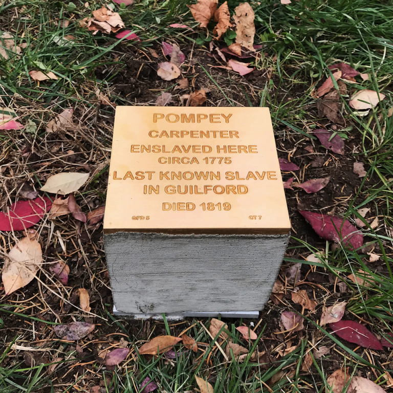 Pompey, son of Montros and Phillis, was born in 1729. He died, still enslaved in 1819. He was a carpenter and was held captive by many slaveholders over his long life. At this site, he was held by Ebenezer Dod in the previous house at this site.