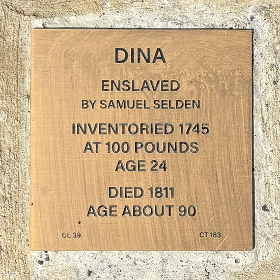 Only three records document Dina’s life in Lyme. At age 21 she was listed in the estate inventory of Samuel Selden (1695-1745) and appraised at 100 pounds. Her circumstances over the next 70 years are not known, but as a young woman she likely provided domestic labor for Selden, who owned extensive acreage, called Twelve Mile Island Farm, that included a cove along the Connecticut River, agricultural land, a sawmill, and a prosperous fishery. Town records and the records of Lyme’s third church both note Dina’s death from old age and other debility in 1811 when she was “about 90.”
