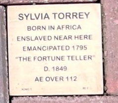 Sylvia Torrey was kidnapped as girl from West Africa. After a trans-Atlantic trip that would have lasted around 80 days, she was sold to Matthew Robinson of Newport, Rhode Island. She married Cuffee Torrey and had a least one son, Lewis, with him. Lewis was born free in 1784. His status as free person was the result of the Rhode Island Gradual Emancipation Law, which was created the same year.